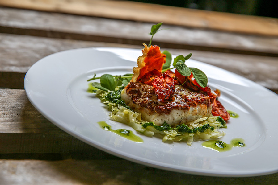 Annemette Fruergaard har sammensat en lækker ret af torsk med tomattapenade, bagte tomater og vesterhavsost.